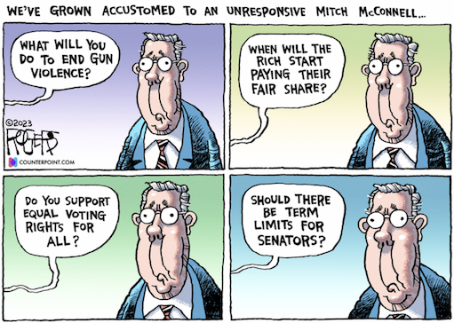 It’s the nature of politics to seek advantage in a crisis. The sad twilight of Mitch McConnell will prove to be no exception. But what I keep coming back to is a different and likely even more consequential question: What if Biden has his own McConnell moment? Imagine it happening in the latter days of the 2024 campaign, with Trump as the Republican nominee and the fate of the free world itself on the line. This is hardly an implausible hypothetical. There are, sadly, a million possibilities—a health scare, a bad fall as McConnell experienced, just the accelerated condition of advanced old age. The reign of the octogenarians is a risky bet for a democracy. https://www.newyorker.com/news/letter-from-bidens-washington/the-twilight-of-mitch-mcconnell-and-the-spectre-of-2024
