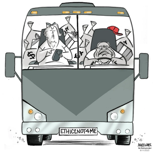 As the Supreme Court prepared to decide the Citizens United case that designated money as political speech, Ginni Thomas — wife of Justice Clarence Thomas — along with conservative activists quietly filed to create exactly the type of non-profit group that would benefit from the decision.Thomas also had a rich backer: Harlan Crow, the billionaire who had helped Thomas and her husband in many ways, from funding luxury vacations to picking up tuition payments for their great-nephew. https://www.politico.com/news/2023/09/10/ginni-thomas-leonard-leo-citizens-united-00108082