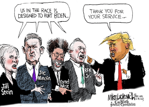 Washington might be fixated on Manchin and No Labels, but I’ve found it curious that he’s been getting more attention lately than the more realistic threats to Biden’s candidacy coming from his left flank—Robert F. Kennedy Jr., Cornel West and Jill Stein. All three of them are swimming in a pool of leftist populism, anti-establishment thinking, antiwar dogma and a dash of conspiracy theory. Each of them has the potential to siphon support from disaffected young people, progressives, and younger Black voters—core Democratic voting blocs that have soured on Biden since 2020.Among those three, though, Kennedy is the candidate that Democrats should be most concerned about. I find it strange that the alarms aren’t louder. https://puck.news/bidens-kennedy-curse/