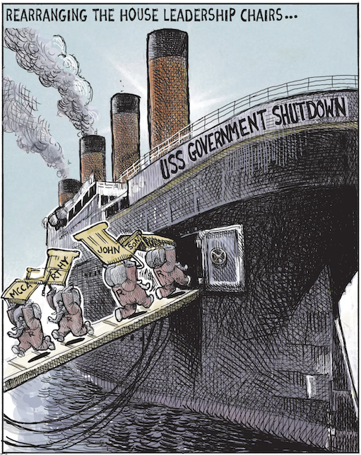 Politico: Given the timetable (less than a week), Johnson’s experience dealing with shutdown politics (near zero), and the level of disarray in the GOP conference (high), the chances of a shutdown are growing.Sources on the Hill and at the White House said they are adjusting travel plans accordingly and preparing to spend the holiday in D.C.