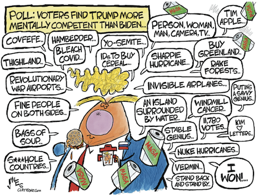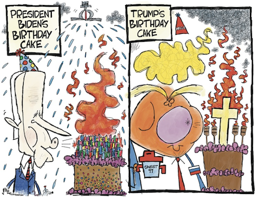 How is it possible that it’s not front page news when a man who soon may return to power calls for law enforcement to kill people for minor crimes? And why do so few people question Trump’s mental acuity rather than Biden’s, when Trump proposes delusional, unhinged plans for forest management and warns his supporters that Biden is going to lead us into World War II (which would require a time machine), or wrongly claims that he defeated Barack Obama in 2016?