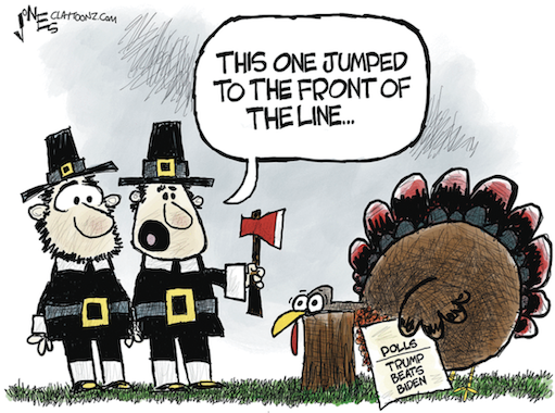 "Happy Thanksgiving to ALL, including the Racist & Incompetent Attorney General of New York State, Letitia 'Peekaboo' James, who has let Murder & Violent Crime FLOURISH, & Businesses FLEE; the Radical Left Trump Hating Judge, a 'Psycho,' Arthur Engoron, who Criminally Defrauded the State of New York, & ME, by purposely Valuing my Assets at a 'tiny' Fraction of what they are really worth in order to convict me of Fraud before even a Trial, or seeing any PROOF, & used his Politically Biased & Corrupt Campaign Finance Violator, Chief Clerk Alison Greenfield, to sit by his side on the 'Bench' & tell him what to do; & Crooked Joe Biden, who has WEAPONIZED his Department of Injustice against his Political Opponent, & allowed our Country to go to HELL; & all of the other Radical Left Lunatics, Communists, Fascists, Marxists, Democrats, & RINOS, who are seriously looking to DESTROY OUR COUNTRY. Have no fear, however, we will WIN the Presidential Election of 2024, & MAKE AMERICA GREAT AGAIN!!!" — Donald Trump’s unhinged Thanksgiving message posted on Truth Social. https://truthsocial.com/@realDonaldTrump/posts/111458584765047772