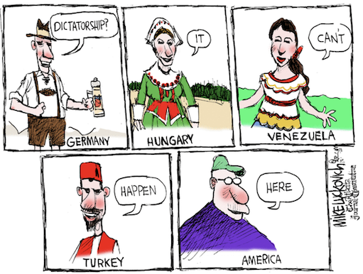 with remarkable consistency to one: Dictators are good. Trump