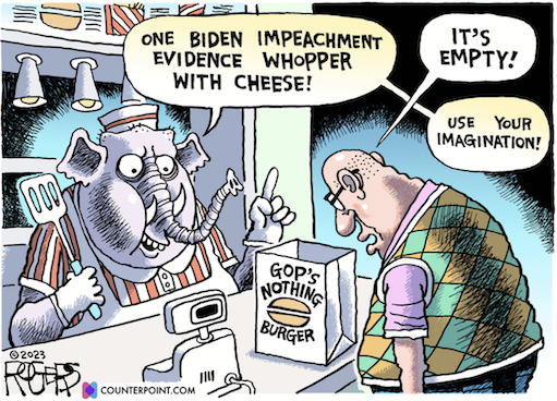 Fox News stars, father and son Steve Doocy and Peter Doocy, reminded viewers that Republicans have been investigating Biden for more than a year and have still come up with no evidence to impeach him. As in zero, zilch, nada. “The House Oversight Committee has been at this for years,” Boy Doocy said Friday, “and they have so far not been able to provide any concrete evidence that Joe Biden personally profited from his son Hunter’s overseas business.” On Monday, Peter’s father informed the Fox & Friends audience that “at this point…[Republicans] have not connected the dots” between Hunter’s alleged crimes and Joe Biden. “They’ve connected the dots—the Department of Justice did on Hunter. But they have not shown where Joe Biden did anything illegally. https://www.vanityfair.com/news/republicans-cant-believe-fox-news-keeps-calling-them-out-on-their-impeachment-bulls-t