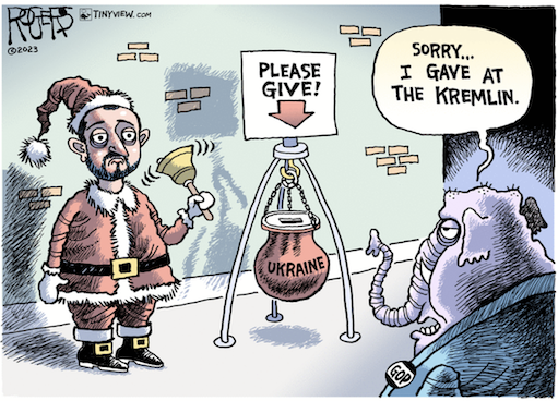 The White House and Senate continue to work frantically toward a deal to supply Ukraine before Congress recesses for Christmas. Supposedly, all leaders of Congress are united in their commitment to Ukraine—so the new speaker of the House, Mike Johnson, insists. Yet somehow this allegedly united commitment is not translating into action. Why not?The notional answer is that Republicans must have a border-security deal as the price for Ukraine aid. But who on earth sets a price that could stymie something they affirmatively want to do? Republicans have not conditioned their support for Social Security on getting a border deal. They would never say that tax cuts must wait until after the border is secure. Only Ukraine is treated as something to be bartered, as if at a county fair. How did that happen?
