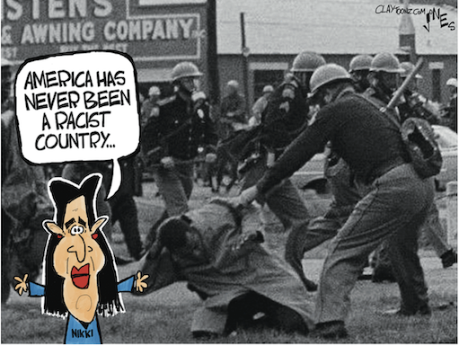“The US has “never been a racist country.” — Nikki Haley during an interview with Fox News. https://www.cnn.com/2024/01/16/politics/nikki-haley-says-us-not-racist-country/index.html
