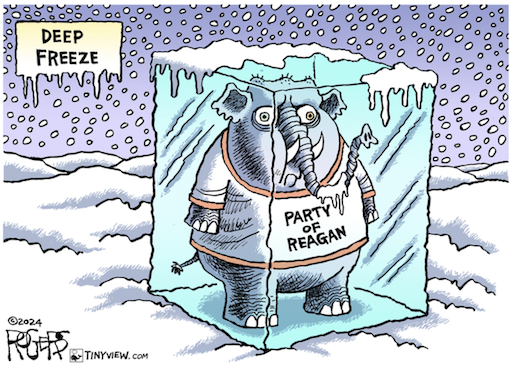 Failing to see the GOP as a party torn asunder allows Trump to seem stronger than he is. He uses this perceived supremacy to cow Republicans who hold the quaint view that governing in a reasonable and (small-d) democratic way is the point of getting elected. Is it just wish-casting to think New Hampshire might seize the opportunity to send them the message that it’s their duty to fight back? https://www.washingtonpost.com/opinions/2024/01/21/trump-gop-division-new-hampshire/