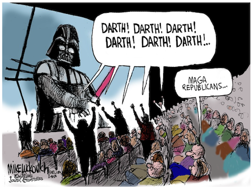 If American values get in his way — like our distaste for authoritarians like Vladimir Putin and Viktor Orban — he mocks those values. When Putin and Orban flattered Trump, that seemed more important to the Mar-a-Lago megalomaniac than our nation’s proud history of facing down autocrats.