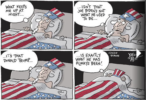 And we will be witnessing this spectacle, Trump in criminal and civil jeopardy, pretty much nonstop. https://www.washingtonpost.com/opinions/2024/02/15/trump-courtroom-political-campaign/