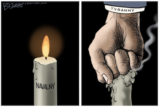 Navalny’s decision to return to Russia and go to jail inspired respect even among people who didn’t like him, didn’t agree with him, or found fault with him. He was also a model for other dissidents in other violent autocracies around the world.The enormous contrast between Navalny’s civic courage and the corruption of Putin’s regime will remain. Putin is fighting a bloody, lawless, unnecessary war, in which hundreds of thousands of ordinary Russians have been killed or wounded, for no reason other than to serve his own egotistical vision. He is running a cowardly, micromanaged reelection campaign, one in which all real opponents are eliminated and the only candidate who gets airtime is himself. Instead of facing real questions or challenges, he meets tame propagandists such as Tucker Carlson, to whom he offers nothing more than lengthy, circular, and completely false versions of history.