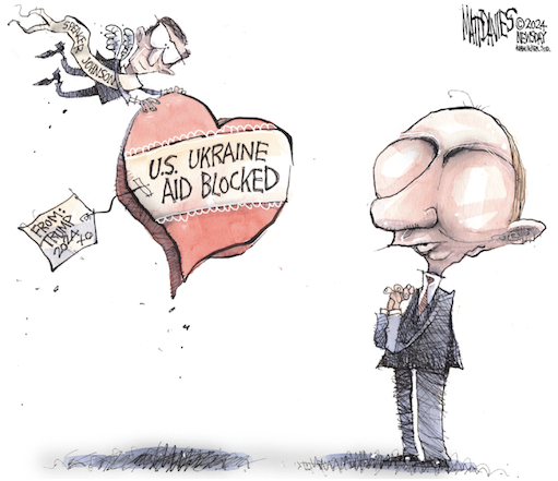 “He (Speaker Mike Johnson) is gonna have to explain to future generations, to his kids, to his grandkids, whether or not he did what was right, whether or not he was a force for good and aided the cause of freedom, or whether he continued down this path of cowardice and doing what Donald Trump and [Russian President Vladimir Putin] want him to do.” — Liz Cheney on Speaker Johnson failing to pass a bill approving aid for Ukraine. https://thehill.com/homenews/house/4475545-cheney-says-its-worth-johnson-losing-speakership-over-passing-ukraine-aid-bill/