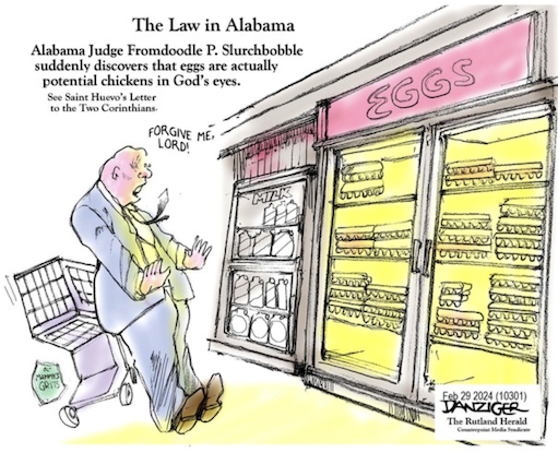 I never thought I’d be grateful to the Alabama Supreme Court for anything, but now I am. With its decision deeming frozen embryos to be children under state law, that all-Republican court has done the impossible. It has awakened the American public, finally, to the peril of the theocratic future toward which the country has been hurtling. https://www.nytimes.com/2024/02/29/opinion/alabama-abortion-ivf.html