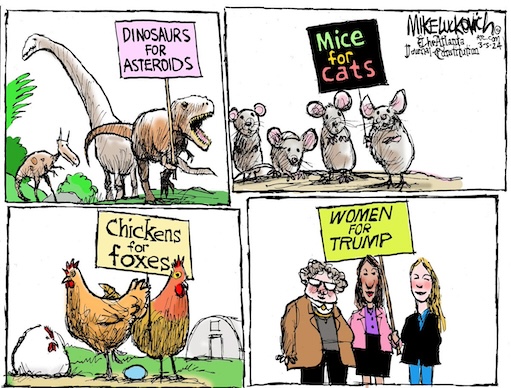 “A woman won’t make a good president because she “has no balls to scratch.” — Trump voter to NBC. https://twitter.com/Acyn/status/1765063371244949994