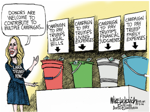 “The United States as a “third-world nation that has weaponized its law enforcement,” “a nation that is no longer admired, respected or listened to on the world stage” and a “drug-infested nation, crime-ridden nation” with an economy that is “collapsing into a cesspool of ruin.”” — Donald Trump. https://www.washingtonpost.com/politics/2024/03/11/trump-campaign-speech-anatomy