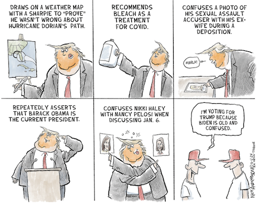 On the campaign trail, Trump is prone to bouts of incoherence that seem to suggest he is losing it. But, lucky man that he is, the Justice Department chose a special counsel whom Trump had appointed to be the U.S. attorney for Maryland to investigate President Biden’s mishandling of classified documents; declining to charge him last month, the prosecutor made the Biden’s memory lapses the story.