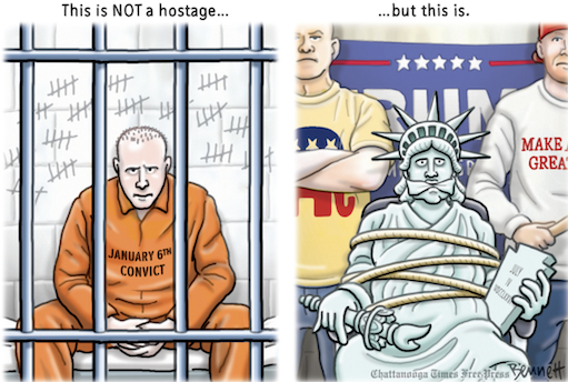 “Our people love those people. If I run and if I win, we will treat those people from Jan. 6 fairly. ... And if it requires pardons, we will give them pardons, because they are being treated so unfairly.” — Trump at a rally in Waco, TX. https://www.msnbc.com/opinion/msnbc-opinion/trumps-jan-6-hostages-remarks-explained-rcna143737
