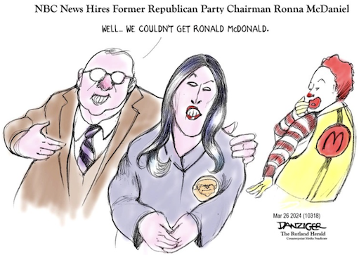 “It couldn’t be a more important moment to have a voice like Ronna’s on the team would provide “an insider’s perspective on national politics and the future of the Republican Party. Ms. McDaniel will be especially involved in the coverage of the 2024 campaign, including election nights.” — Memo from Carrie Budoff Brown, who oversees NBC News political coverage on the hiring of the former RNC Chair. https://www.nytimes.com/2024/03/22/business/media/ronna-mcdaniel-nbc-msnbc.html