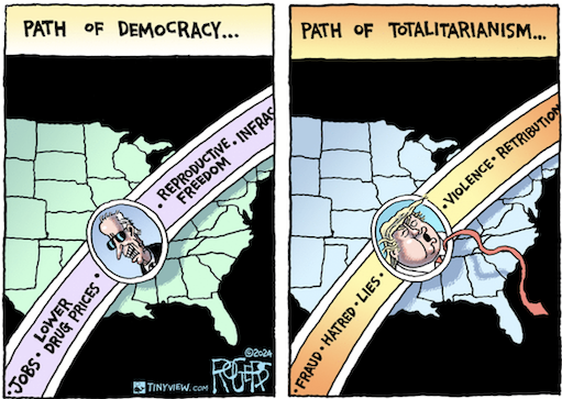 Instead of explaining this Right Wing conspiracy or highlighting Trump’s direct accusation that Biden was on drugs, the press focused on Trump’s comments on Gaza. On one level, Israel and Gaza is a major issue in the campaign and Trump has tried very hard to obscure his position. But by focusing on the one quasi-serious moment in an entirely unserious interview, the press gave the public the sense that Trump was a more normal candidate.