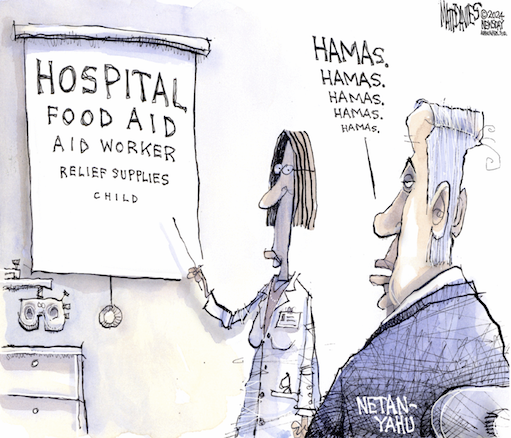 It’s a shame upon shame that it took the deaths of six foreigners in Gaza, humanitarian workers for the U.S.-based World Central Kitchen, to finally, maybe, shake President Biden to reconsider his acquiescence — his complicity — in Israeli Prime Minister Benjamin Netanyahu’s apocalyptic war there.By the time the convoy from chef José Andrés’ organization was annihilated by an Israeli drone strike Monday — killing three Brits, a Pole, an Australian and a Canadian American, along with a Palestinian driver — nearly 33,000 Gazans were dead after six months of Israel’s pummeling, two-thirds of them women and children. More than a million more Gazans, half the strip’s population, have been displaced. Most of those refugees have targets on their backs, crowded as they are around Rafah, Gaza’s southernmost city, which Netanyahu says is next in his sights despite Biden’s talk of “red lines.”