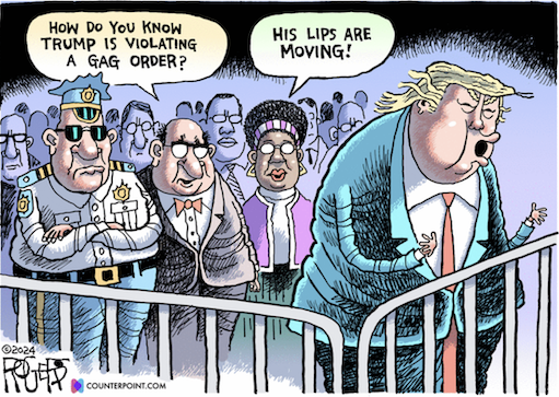 ● The coronavirus would disappear on its own, along with pitching bogus cures;Trump, unchecked, has been free to repeat those lies over and over again, even when the falsehood has been thoroughly exposed and his claims debunked. So it was refreshing to read that Judge Merchan was having none of that in court in Manhattan Friday morning. On Thursday, Trump lied, telling a gathering of reporters outside of the courtroom where he is on trial that he would not be able to take the stand and testify in his own defense, because of the gag order imposed by Judge Merchan. Of course, that’s a lie. Trump has been promising he would testify—perhaps he was looking for a way to walk that back as the reality of being on trial settled in. But Trump was peddling trash in classic fashion, blaming the Judge and lying about the gag order.